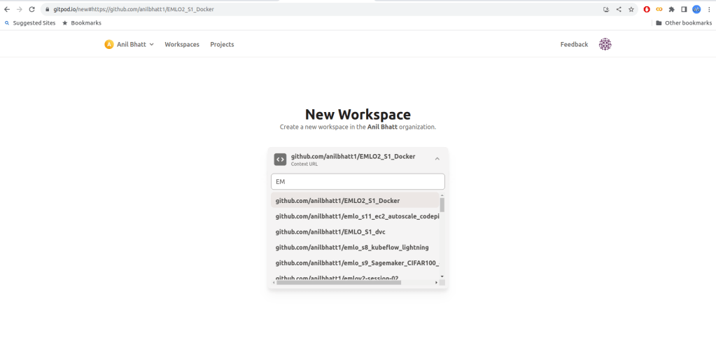 - Select a github repository (here I selected EMLO2_S1_Docker)