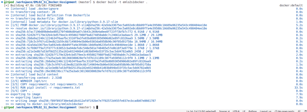 Next, build the docker image in local. Here we are building docker image named emlo2s1docker via the docker command as shown below