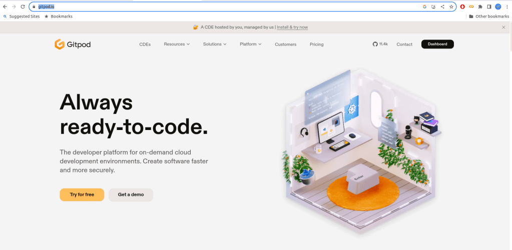 - Then, go to https://www.gitpod.io/
